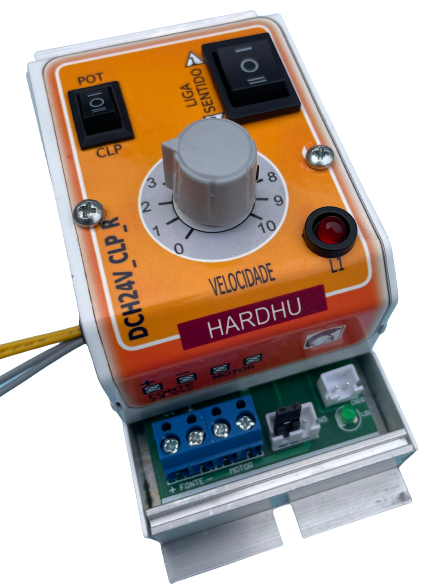 O conversor DCH24V_R aciona motores CC, com tensão de alimentação 24 Vcc.